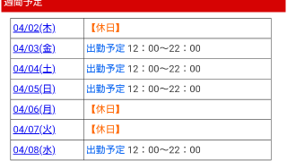今日はアロママッサージ行ってきました身体がほぐれてリラックスマッサージ担当してくれる子腕に磨きがかかってる1週間の出勤予定はこんな感じ↓↓↓遊びに来てね(^_-)?