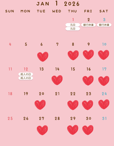 31日の仲良し様方今年最後の風俗遊びにご指名くださってありがとうございました明るい性格でお話も上手だし一緒にいてとても楽しかったです?いつも攻めてもらってばかりで私のターンが短いから今度はいっぱい攻めさせて下さいねまたの再会お待ちしていますね2026年?あけまして?おめでとうございます今年もひなをよろしくお願いします1年はじまりましたねみなさんが良い年になりますように……2026 元旦こちら出勤予定日となります!ハートマークが出勤予定となります!??