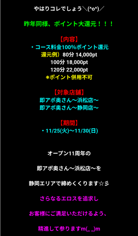 浜松インター15分圏内待機してます浜松店静岡店イベントコース料金100%ポイント還元開催中ですお誘い&ご予約お待ちしてます