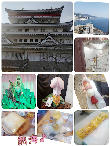 \(^o^)/秘宝館にトリックアート館に…食べ歩き…(写メ以外にもタコ天やらお団子串やら…天神屋おでんやらオムそばやら…所々でたくさん食べてます)苦手なお酒もちょこっと嗜み…遊覧船に乗ったり…現地の牧場で動物と戯れたり…お猿さんの曲芸見たり何故か現地のパチンコ屋さんに行って7連チャンしたり行きも帰りもサービスエリアで色々買ったり…何回も温泉入ったり…あっという間でしたけど旅行楽しかったです旅行太り解消ダイエットと…明日から昼職頑張ります( ´ ∀ ` )ノマタネーうさぎ