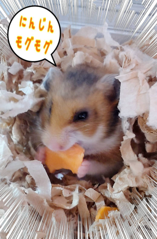 (ゴールデンハムスターのLちゃんは人参とキャベツが大好きです♪)
