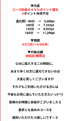 こんにちは即逝き敏感娘出勤しました今日からお店のイベントもスタート普段、中々ポイントが貯まらないお兄様この機会に、貯めて下さい※ポイント併用不可なので、お遊びの時は気をつけてねちぃと遊んで、ポイント貯めてもらえると嬉しいです