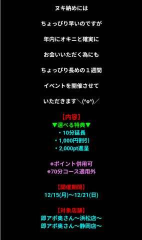 明日10:30初めましてさんメッセージでのお問い合わせに事前のご予約有難うございますどんなお時間になるのか楽しみにしてます*? ? ?*? ? *今日から年末感謝祭開催ですネット予約良いんですご来店お待ちしてます